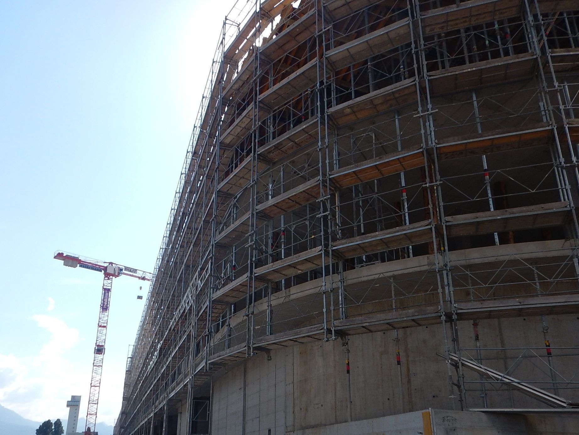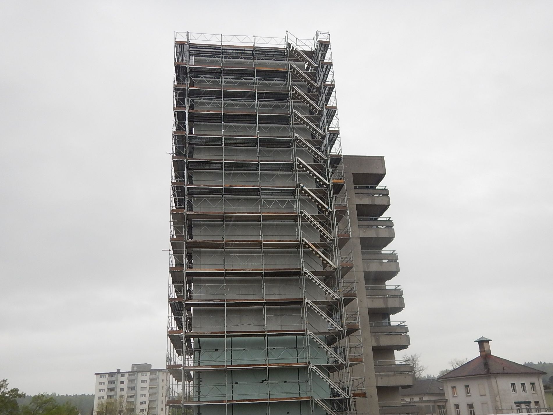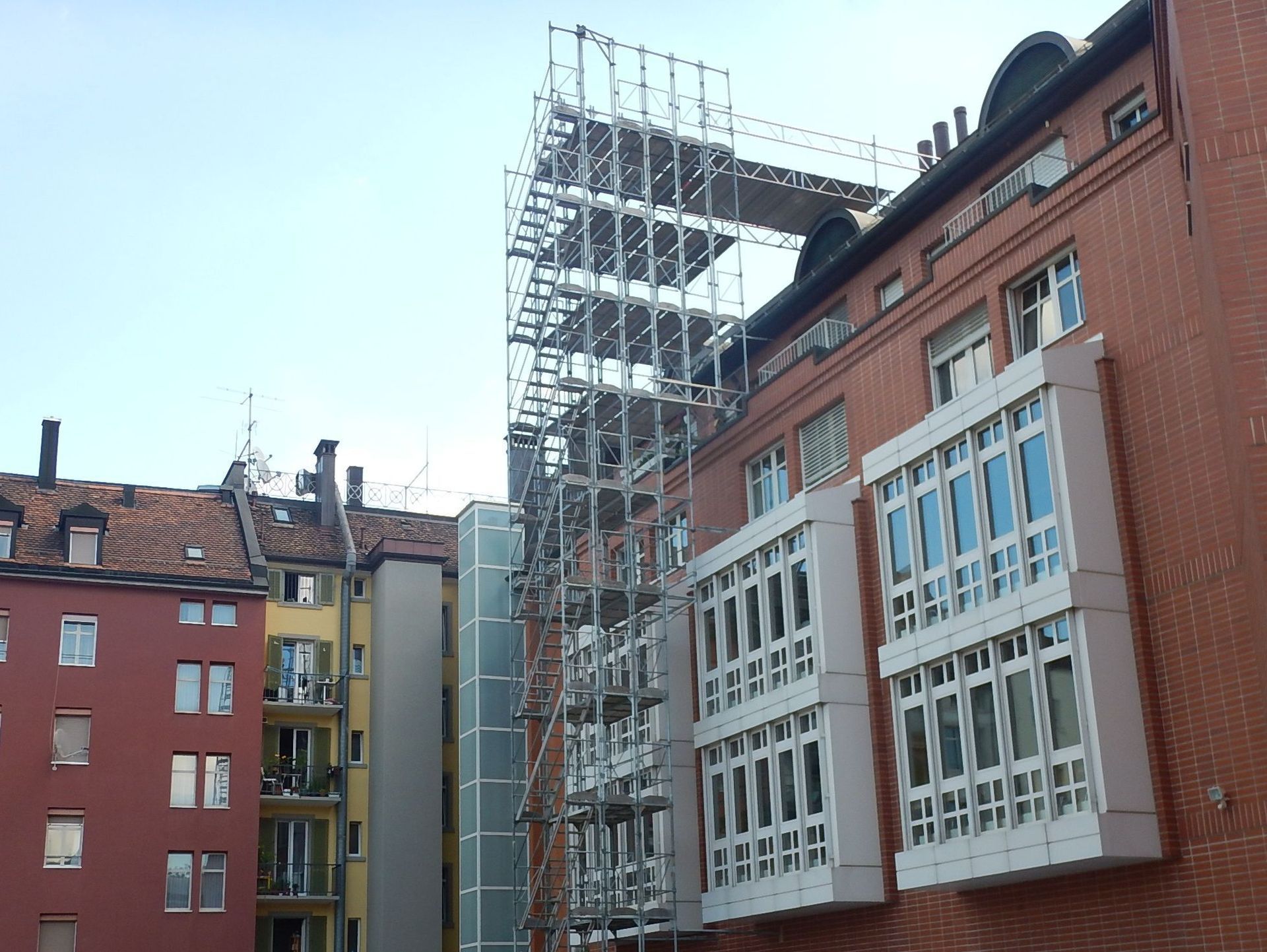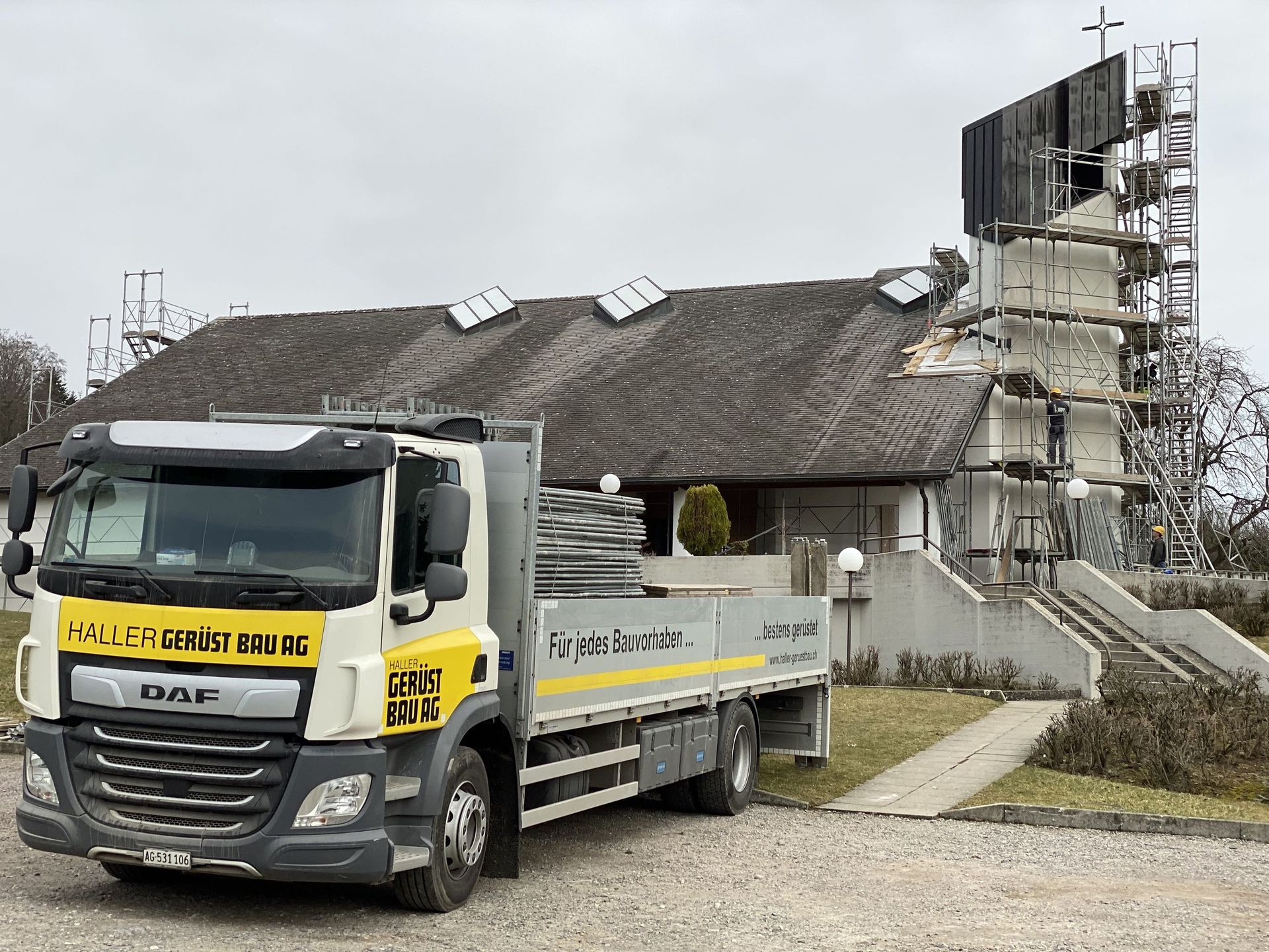 Ob Hochhäuser, Kirchen, öffentliche Bauten oder ganze Wohnsiedlungen – kein Objekt ist zu hoch, zu umfangreich oder zu kompliziert, um nicht von der Firma Haller Gerüstbau AG in Fahrwangen eingerüstet zu werden. Geliefert und montiert werden auch Material- und Personenlifte sowie Notdächer in allen Grössen. Das seit fast fünf Jahrzehnten bestehende Unternehmen verfügt über viel Erfahrung und ein Gerüstmaterialvolumen von ca. 480’000 m2. Das sind umgerechnet etwa 60 Fussballfelder, mit welchem das Unternehmen auch die anspruchsvollsten Projekte in Angriff nehmen kann. Das Gerüstmaterial wird technisch laufend auf den neusten Stand gebracht und entspricht den aktuellsten Sicherheitsnormen.
